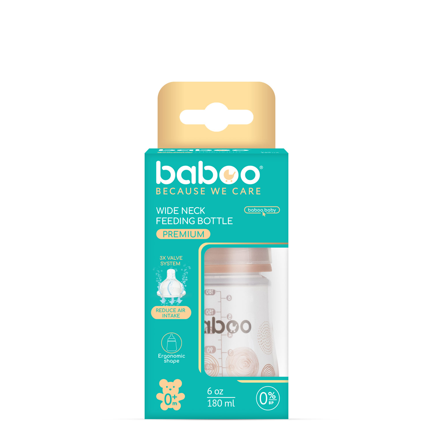Baboo Anti-Colic Feeding Bottle, 180 ml, Au Naturale, 0+ Months