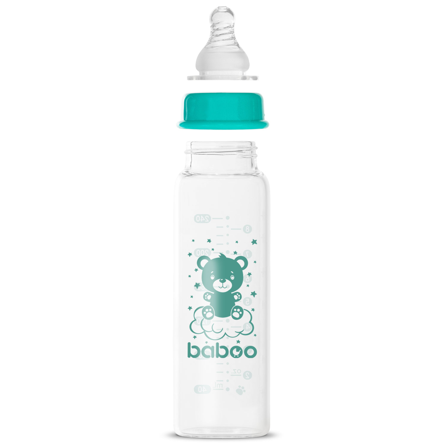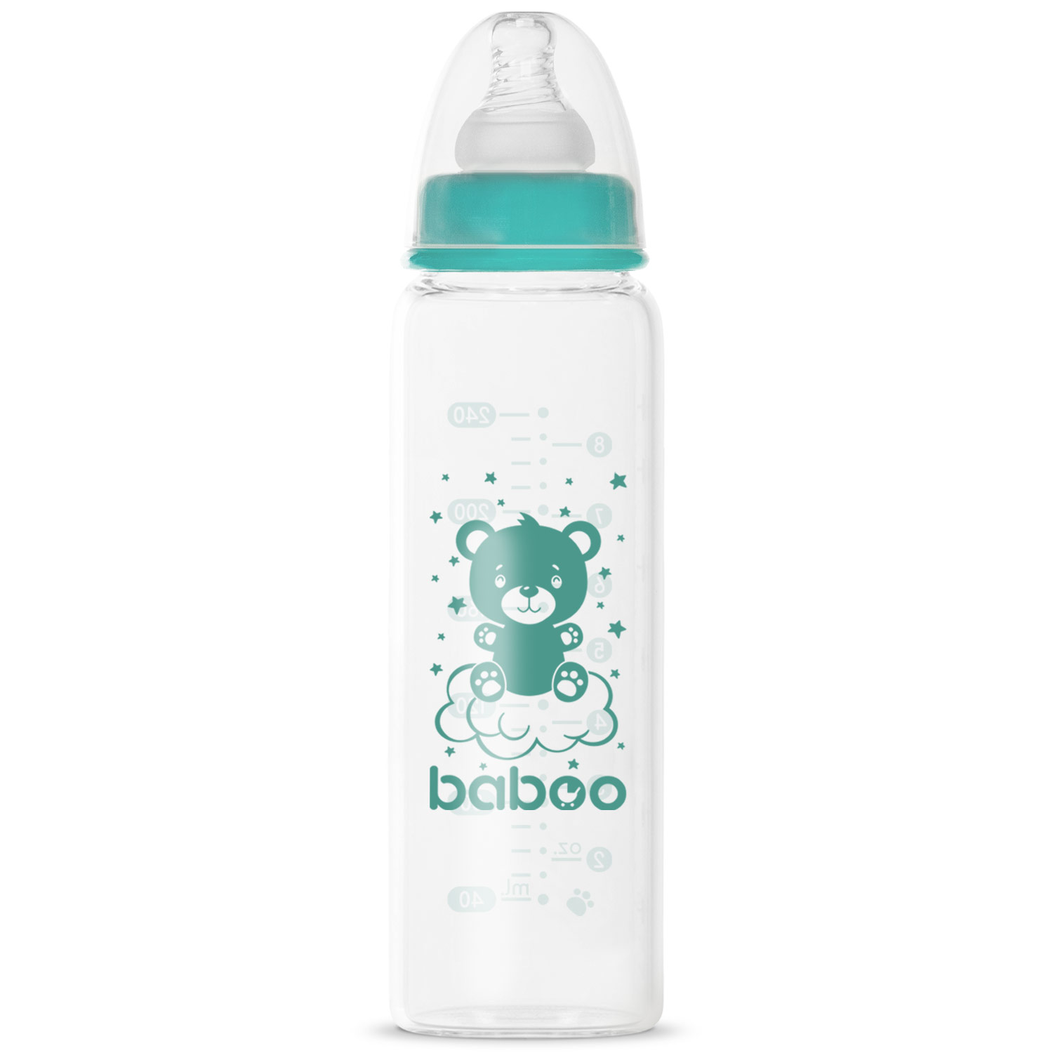 Baboo narrow-neck glass bottle is a great helper for parents when feeding their baby. Made of high-quality medical silicone, the pacifier has an anatomical shape, preventing air from accumulating in a belly and at the same time protecting the baby from unpleasant feelings.