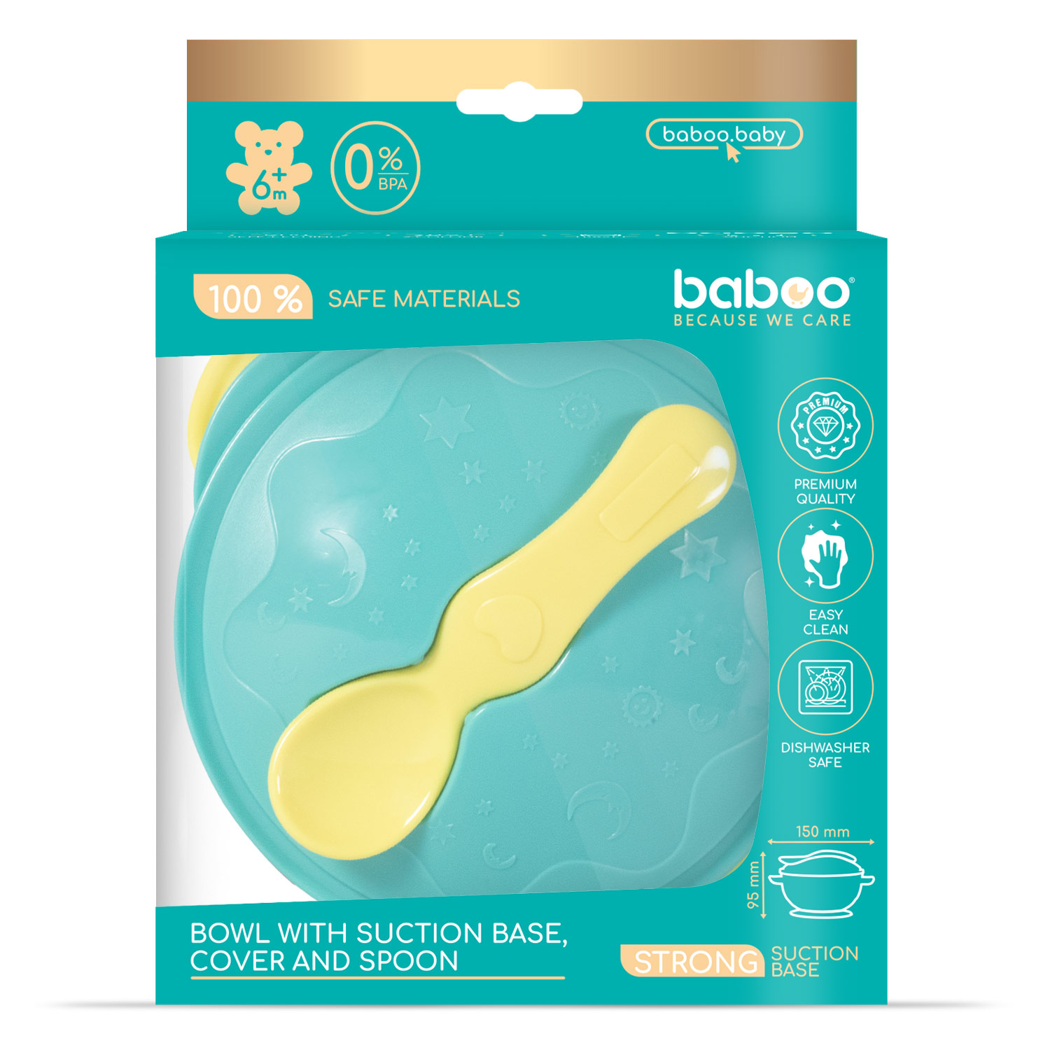 Baboo Bowl with Suction Base, Cover and Spoon, Lagoon Fiesta, 6+ Months