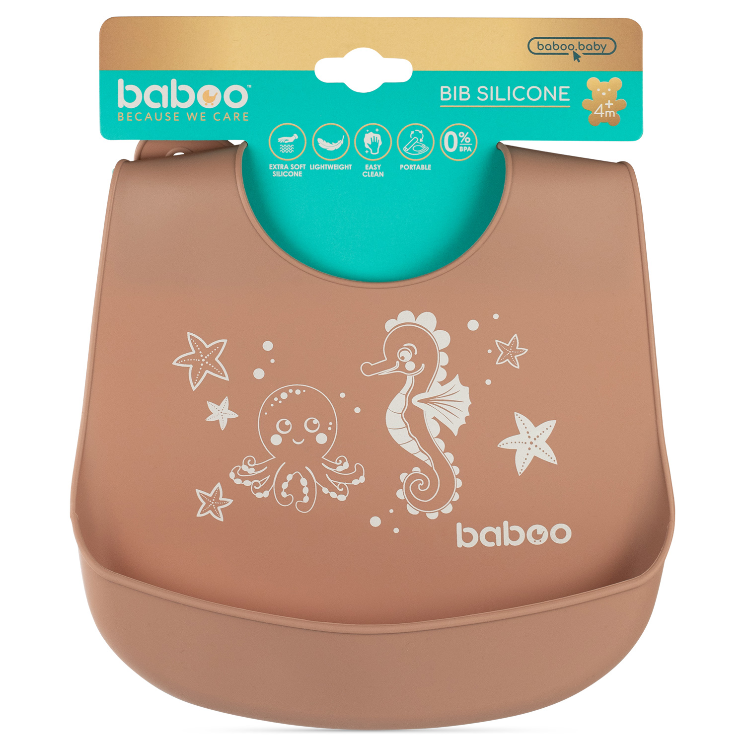 Baboo silicone bib is a comfortable and practical accessory that is easy to fasten and clean when needed.