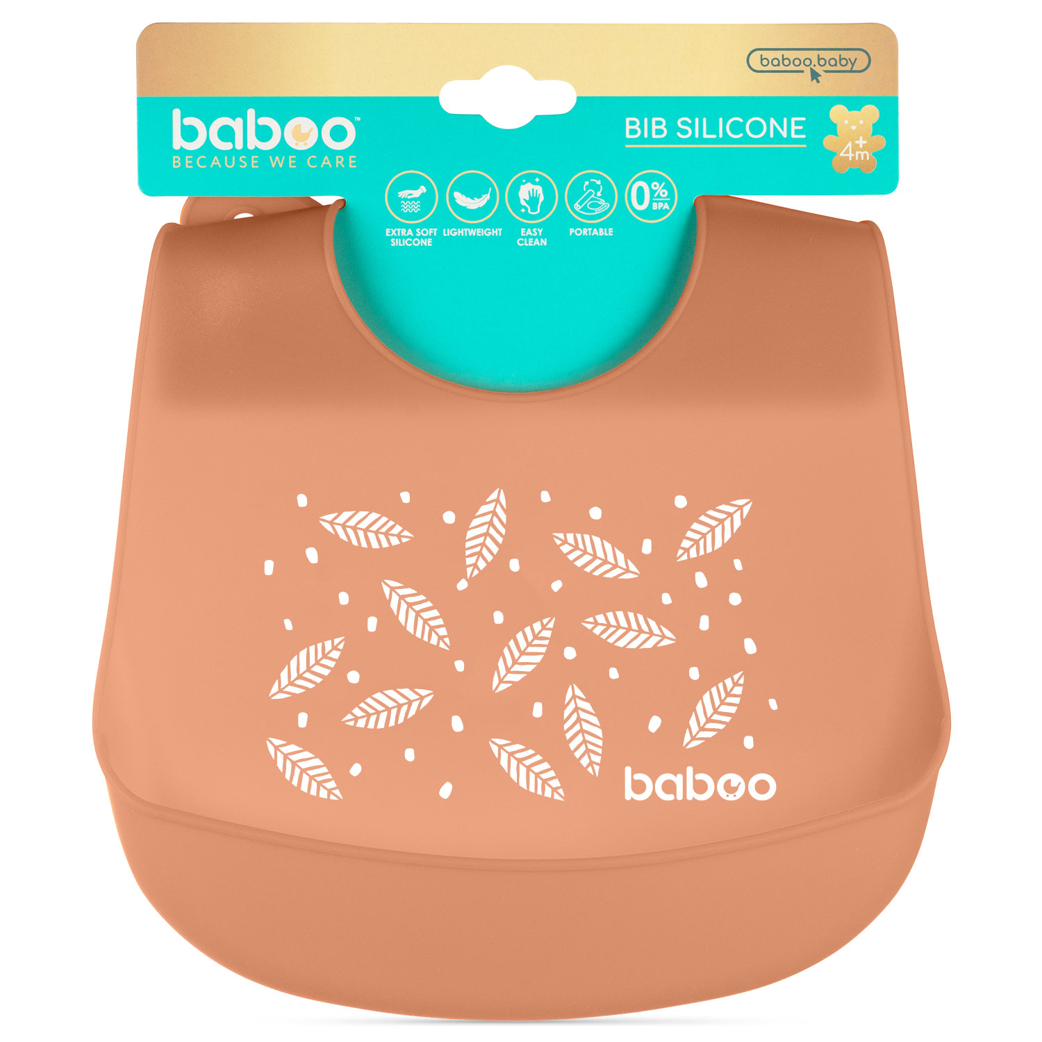 Baboo Silicone Bib, Peachy Keen, 4+ months